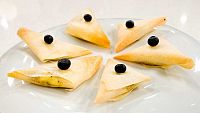Envolver la pasta brick formando un triangulo, hornear a 180ºC durante 8 minutos.